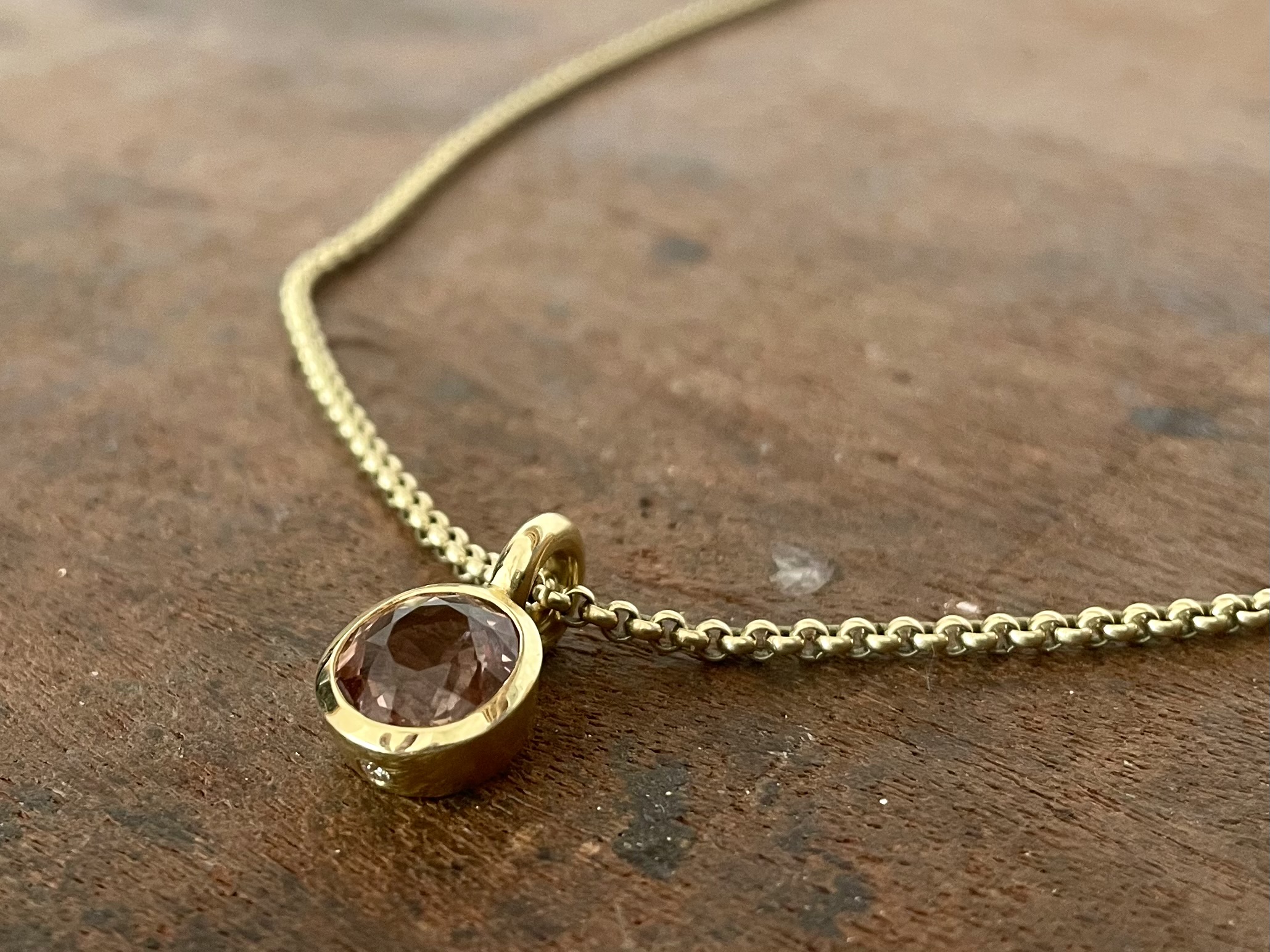 apricotfarbener Turmalin in 750/-Gelbgold mit einem Brillanten