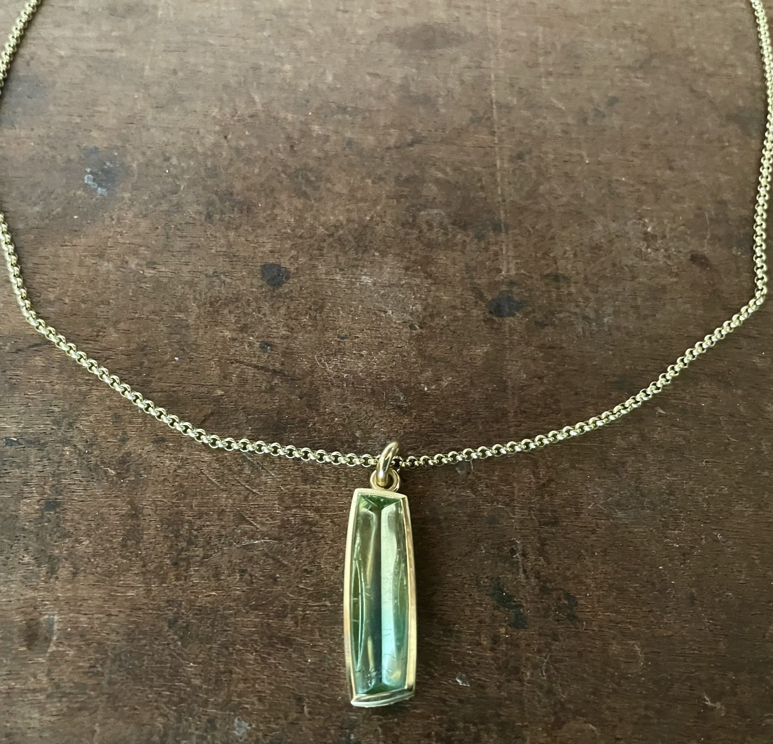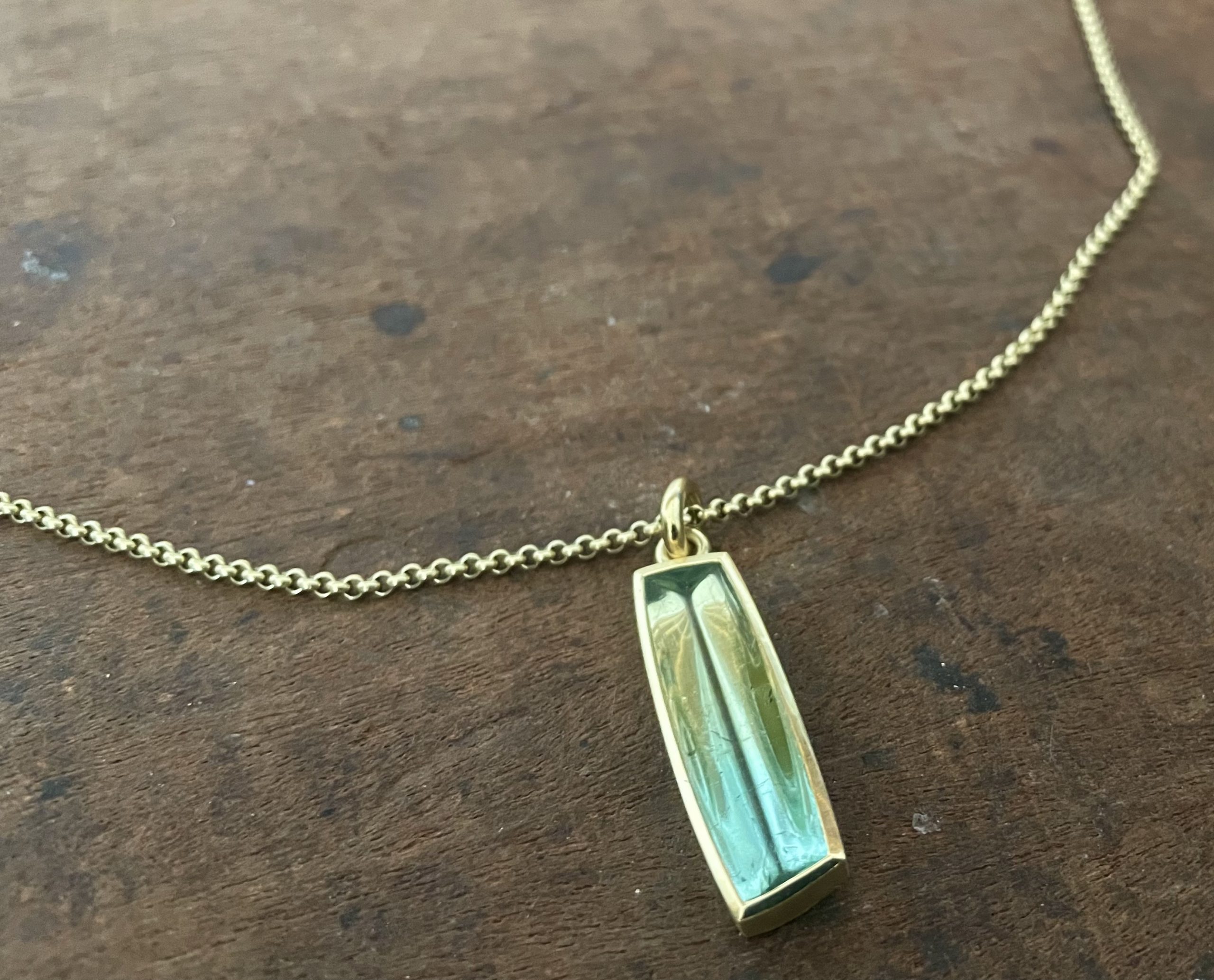 Turmalin im Farbverlauf gelb/grün, Bufftop Schliff, 8,83 ct