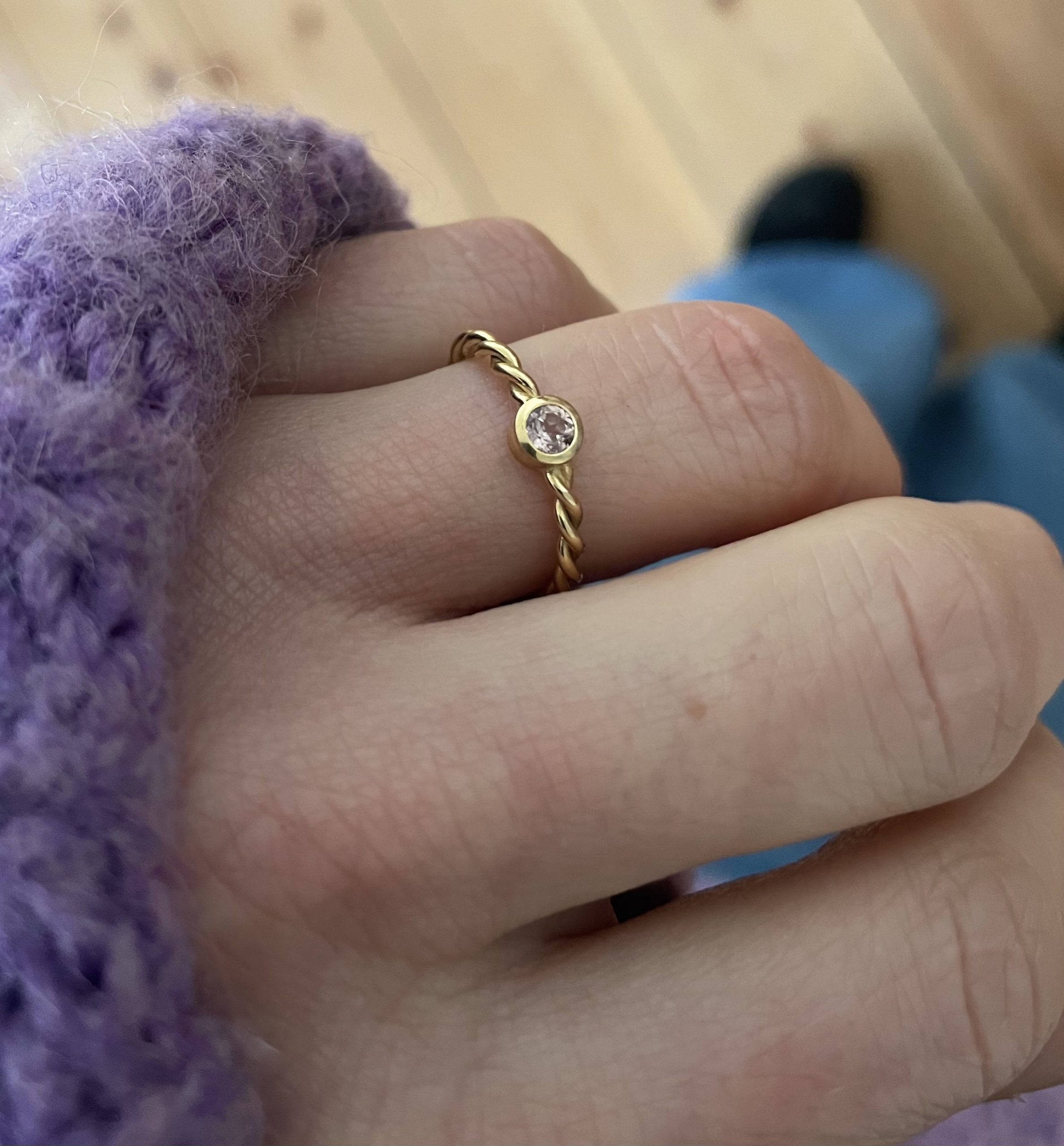 gedrehter Ring in 750/-Gelbgold mit einem rosa Saphir