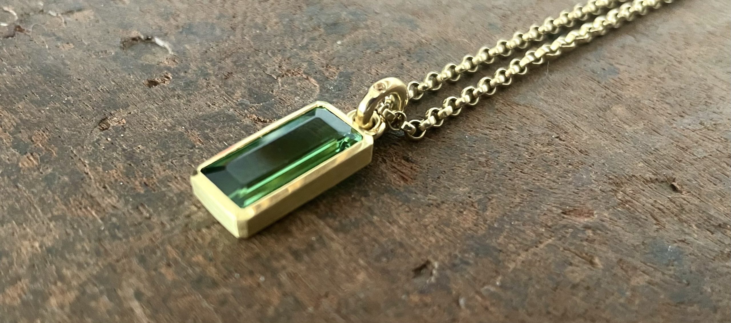 großer Turmalin in 750/-Gelbgold mit drei gelben Saphiren