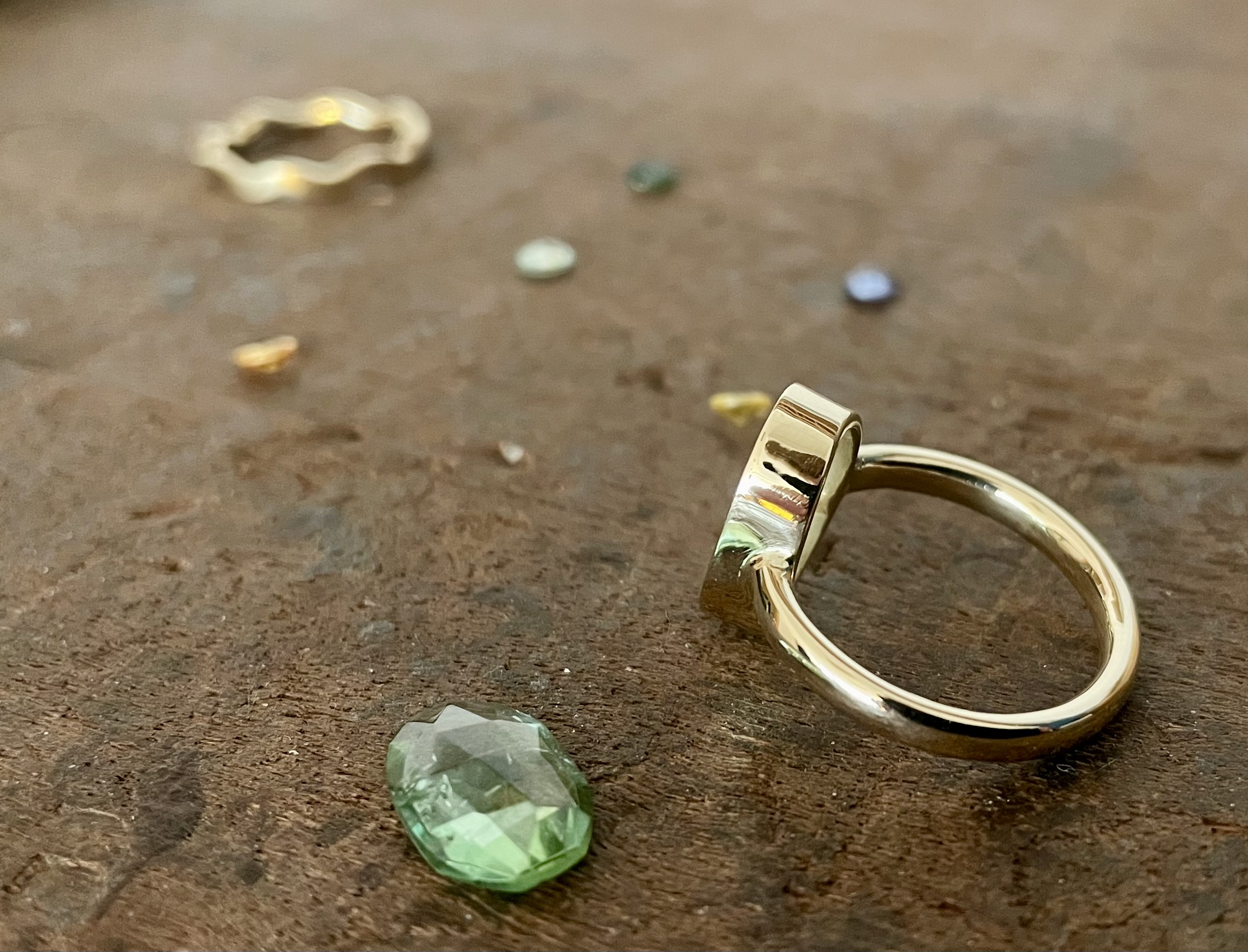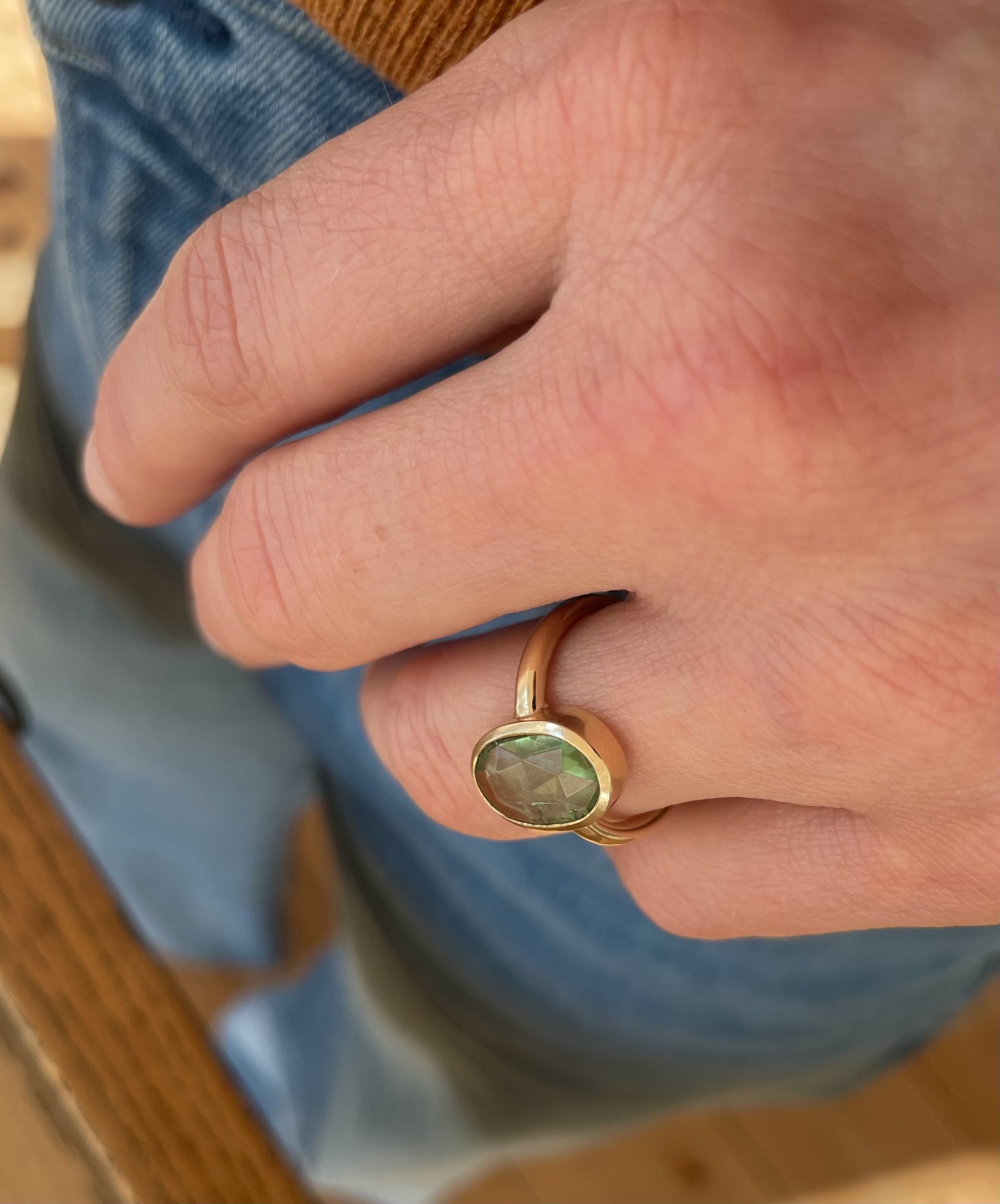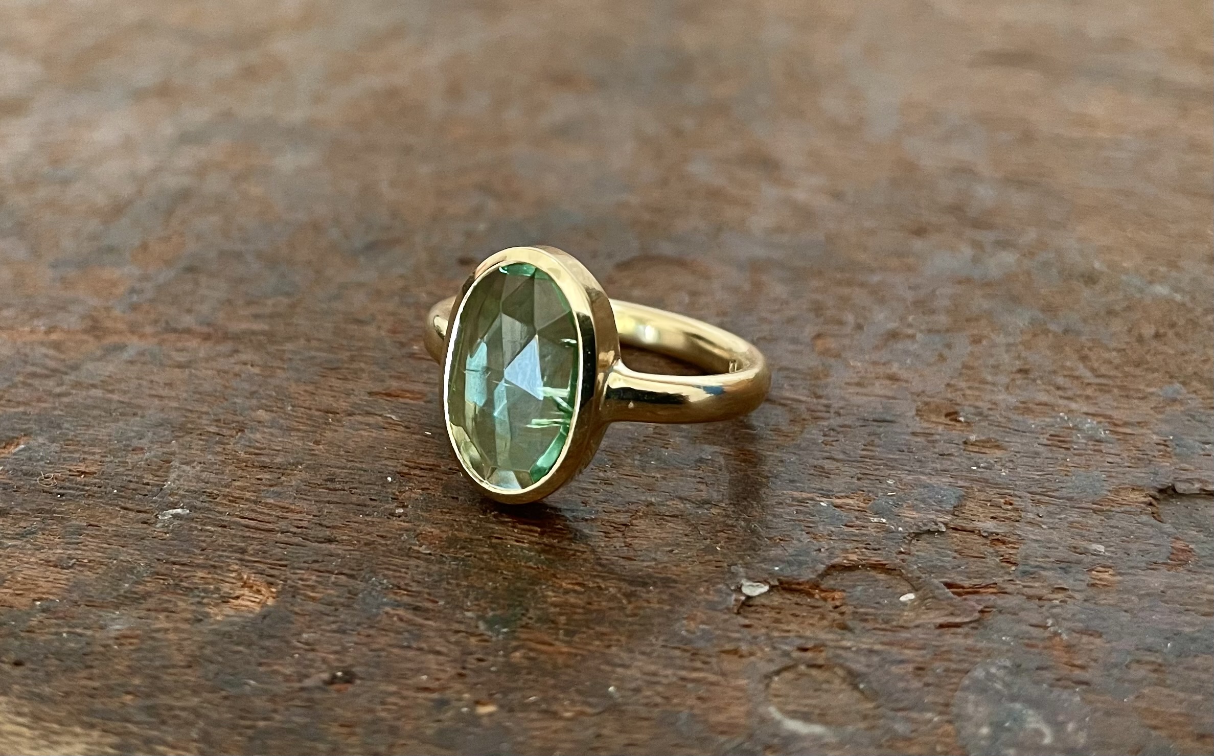 grüner Turmalin im Rosenschliff in Roségold
