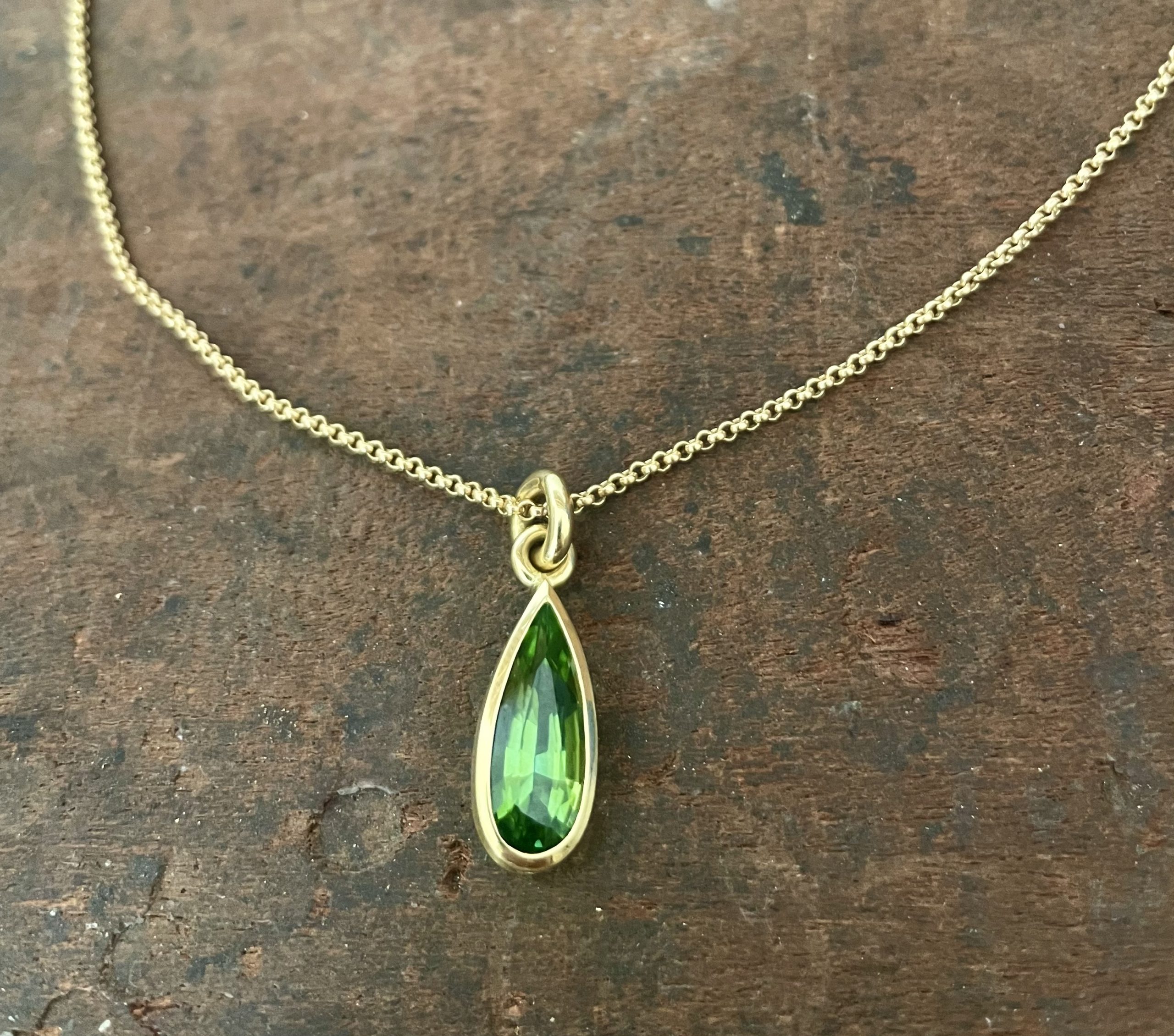 grüner Turmalin Tropfen in 750/-Gelbgold mit einem Brillanten