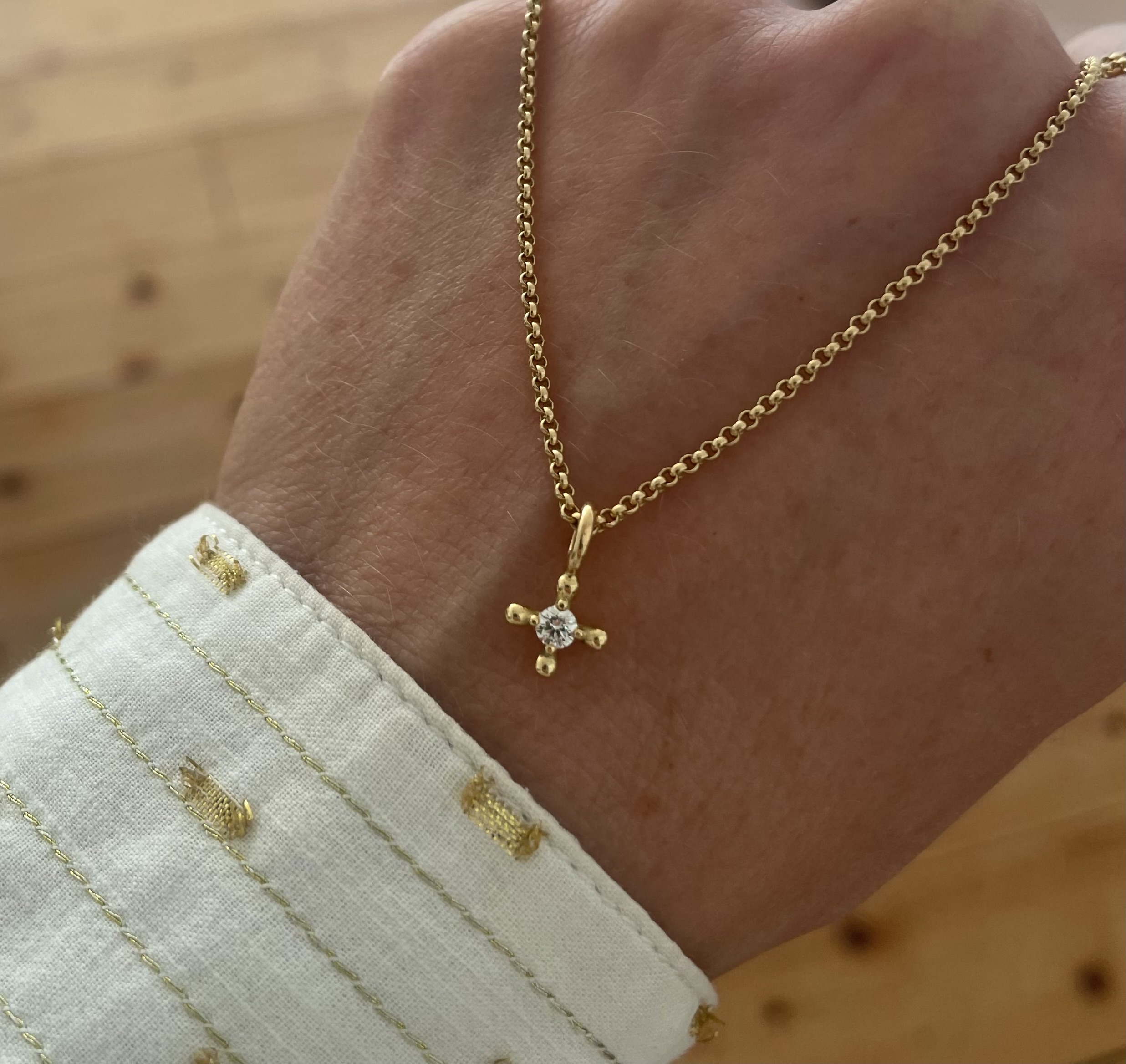 Kettenanhänger EMMI in 750/-Gelbgold mit einem Brillanten – VERKAUFT