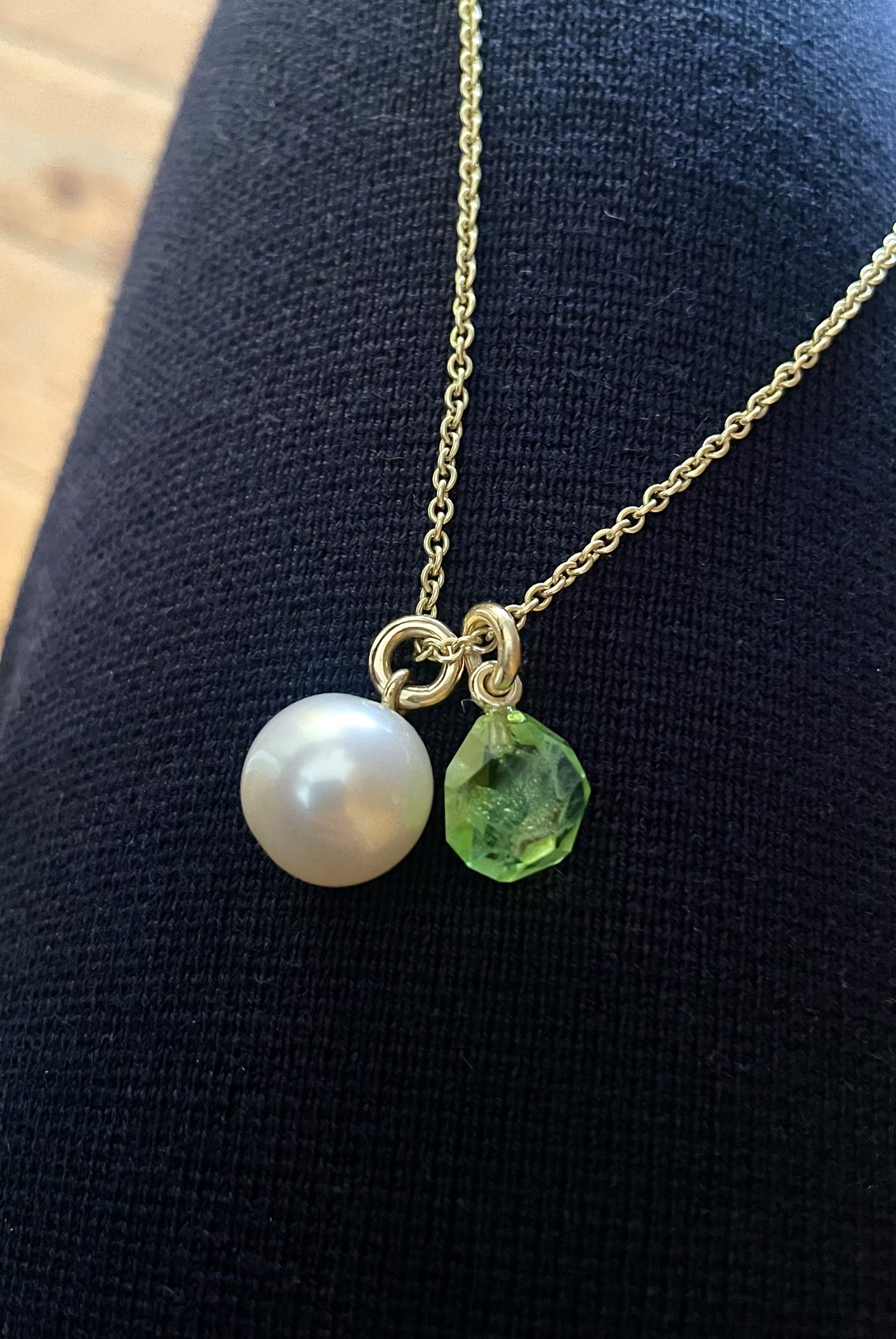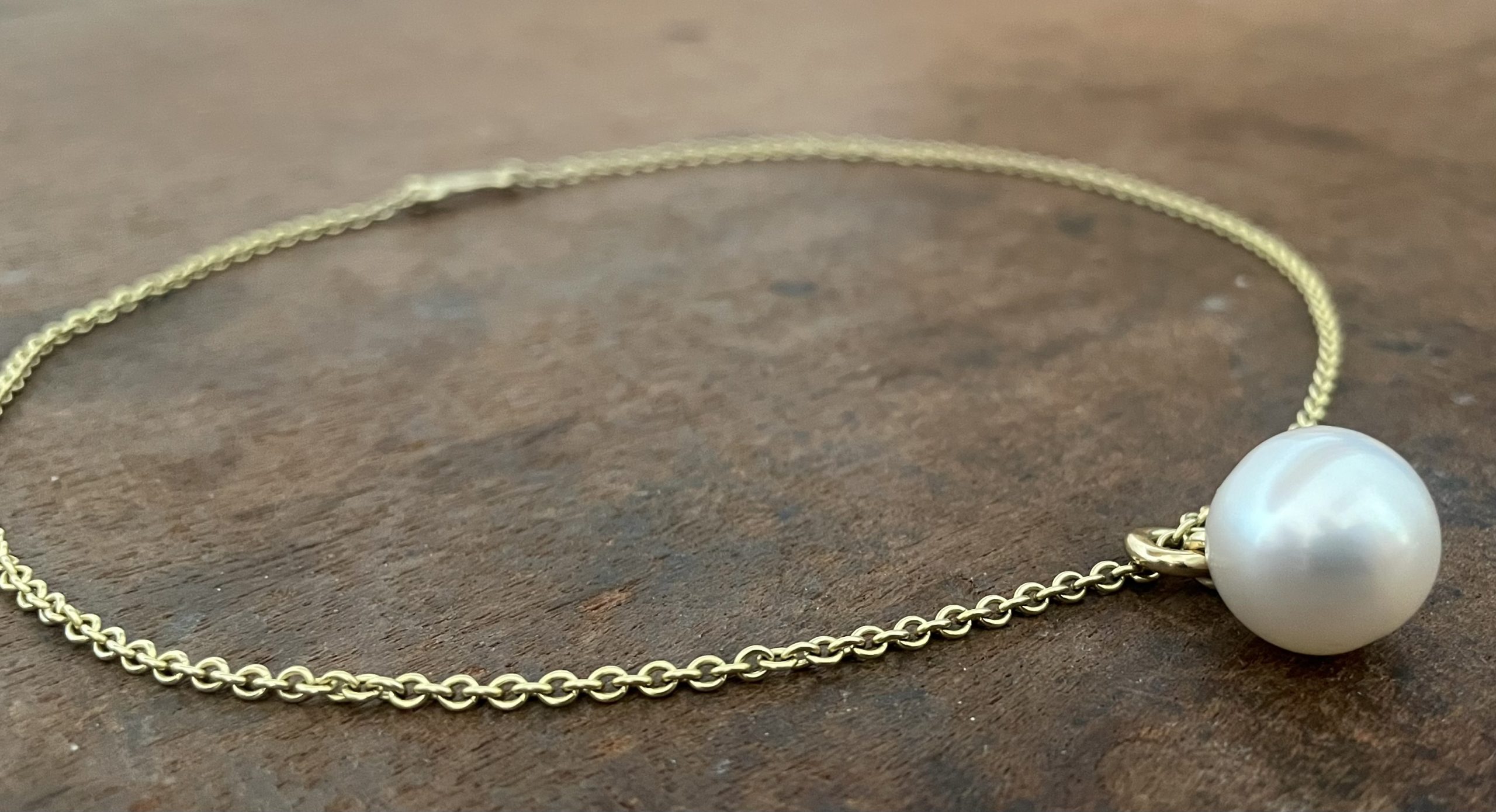 750/-Gelbgold 1 Südseeperle in Weiß Die Länge inklusive Aufhängung beträgt circa 24 mm.