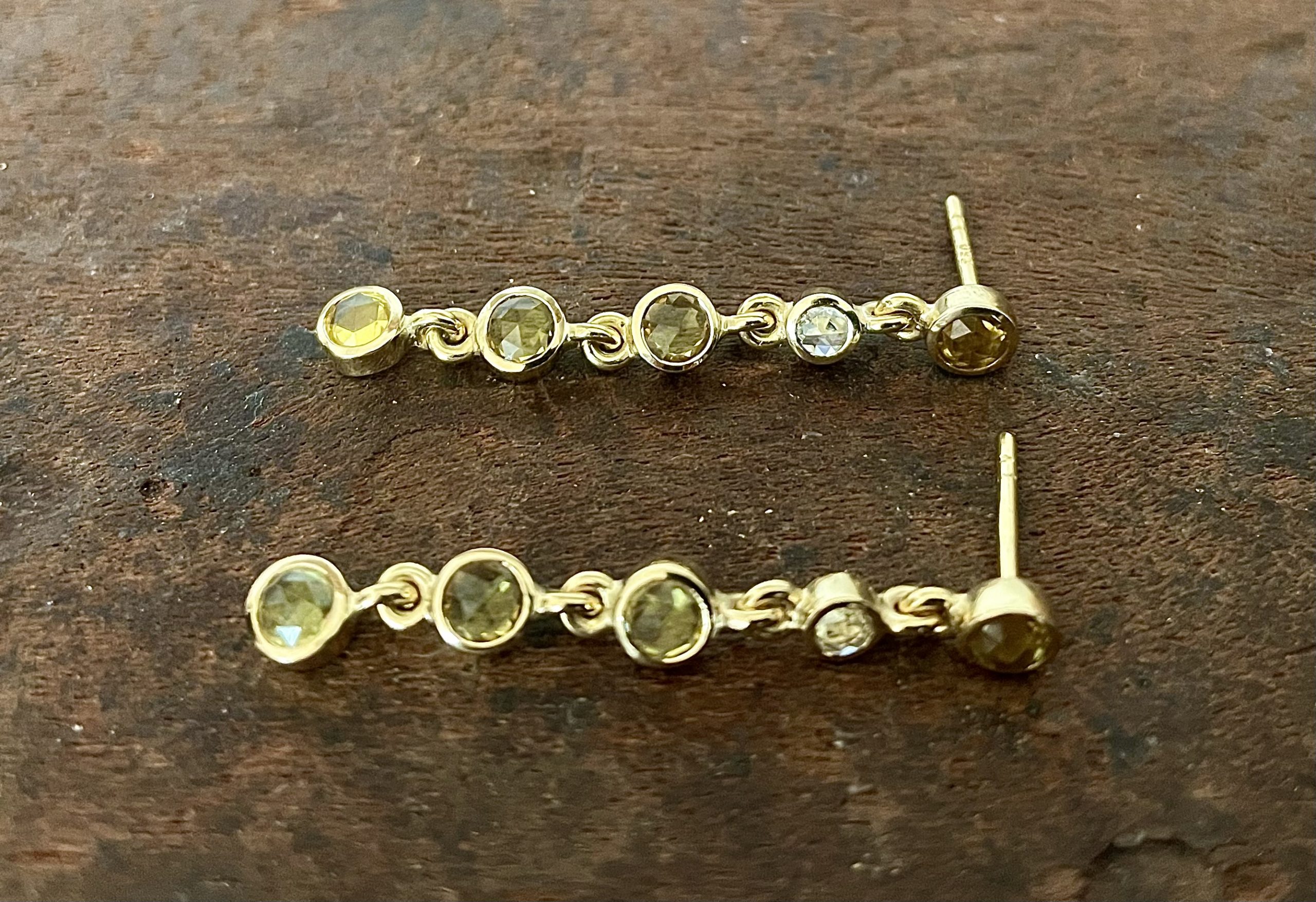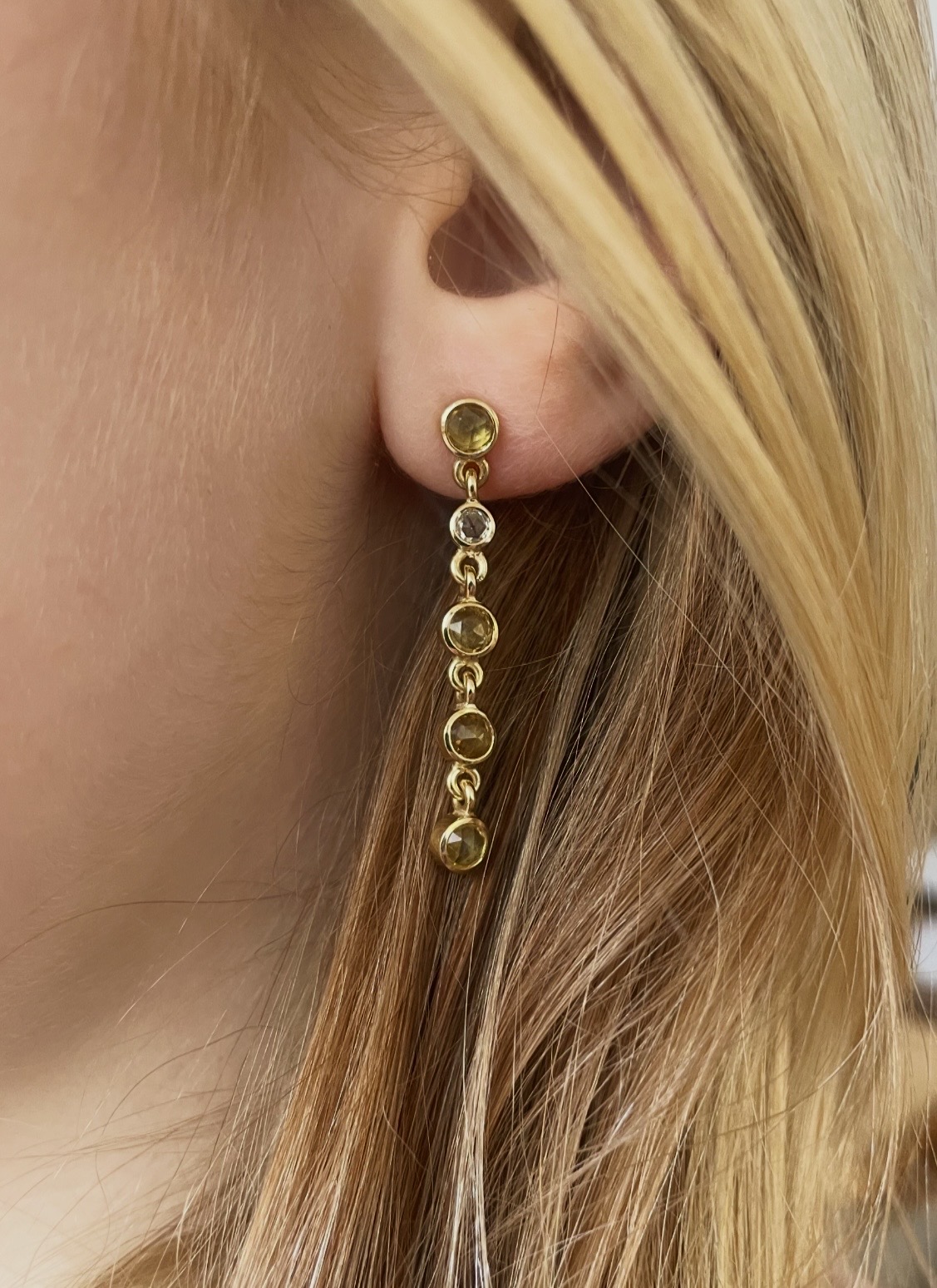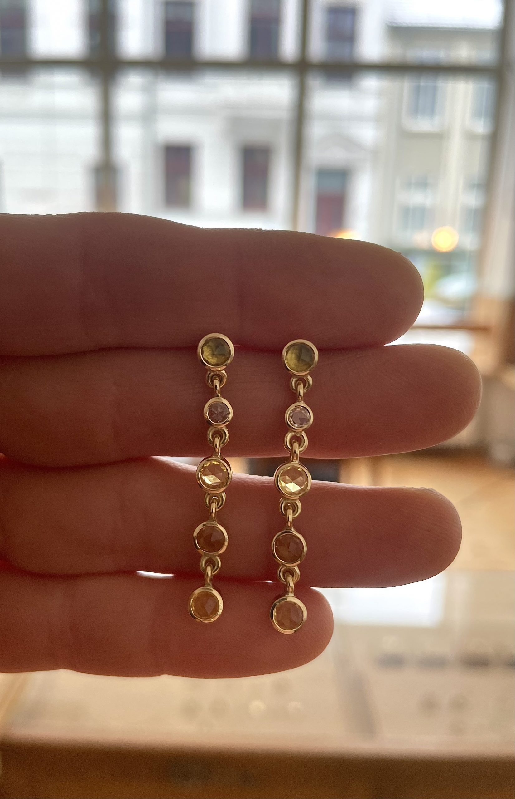 Ohrhänger aus gelben Saphiren und Diamanten im Rosenschliff in 750/-Gelbgold