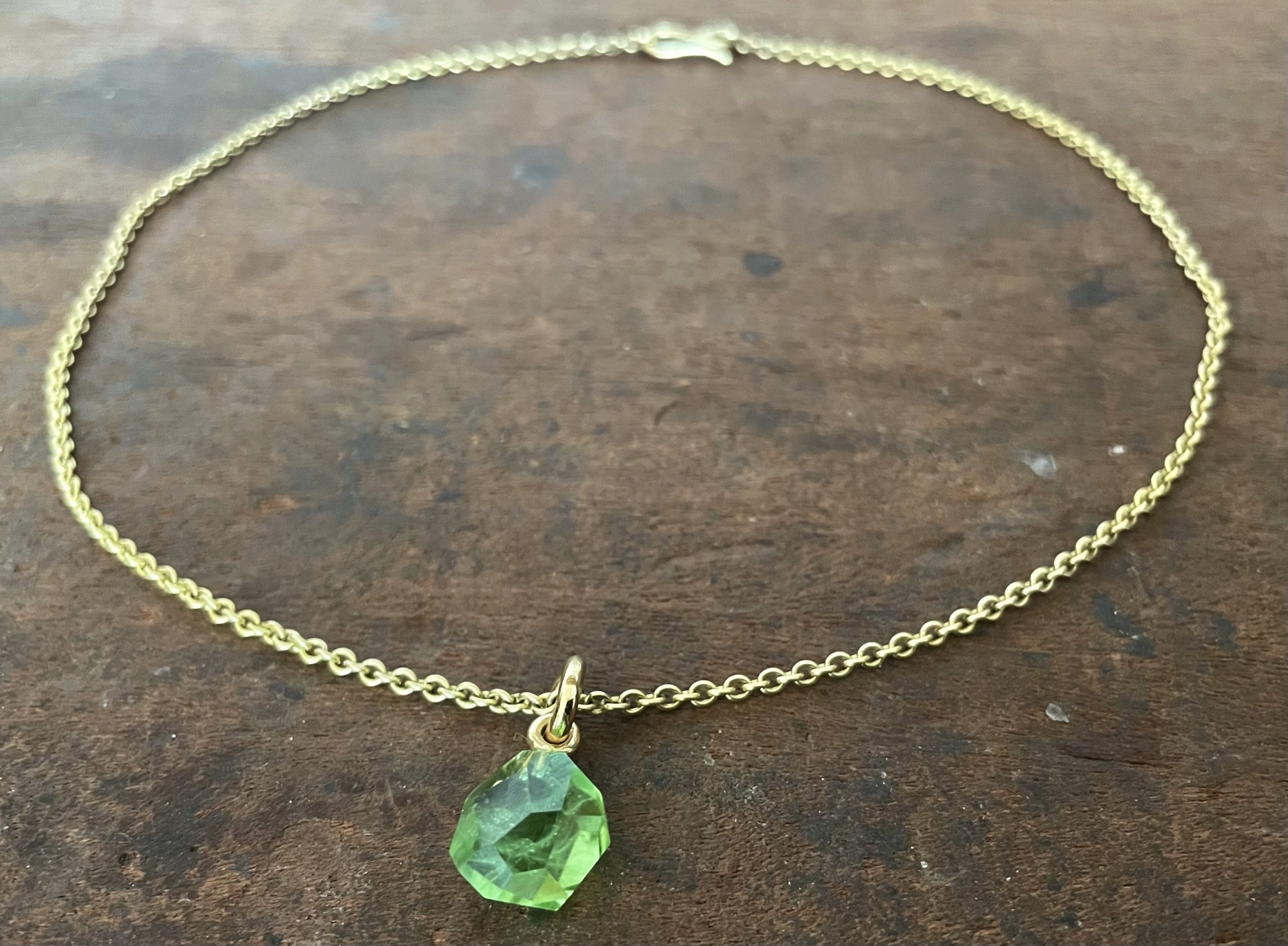750/-Gelbgold Peridot mit großen Facetten, 9,71 ct Die Gesamtlänge beträgt circa 22,5 mm.