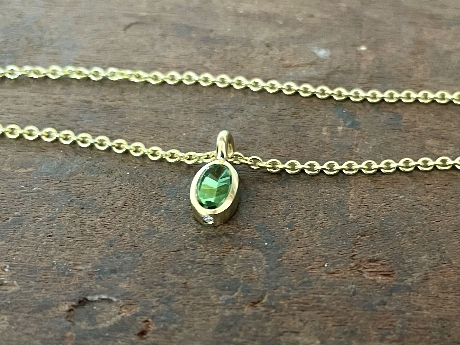 Turmalin in 750/-Gelbgold mit einem Brillanten-VERKAUFT